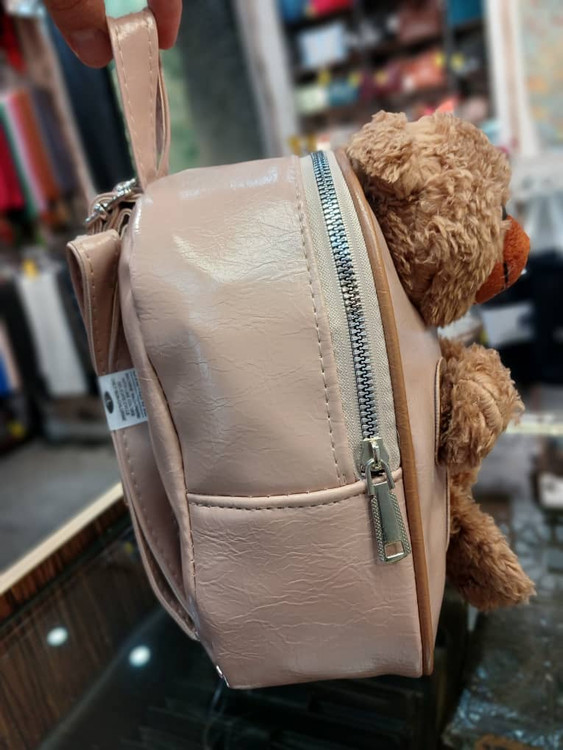 کوله پشتی چرمی جدیدمون، هم دستی داره هم پشتی پشتش یه خرس کوچولوی آویزونی داره که استایلشو صد برابر بامزهتر کرده سایزش ۲۲×۲۴، خیلی جمعوجور و خوشفرمه! چهار تا رنگ جذاب داره که هر کدومش یه حس خاص و دخترونه میده